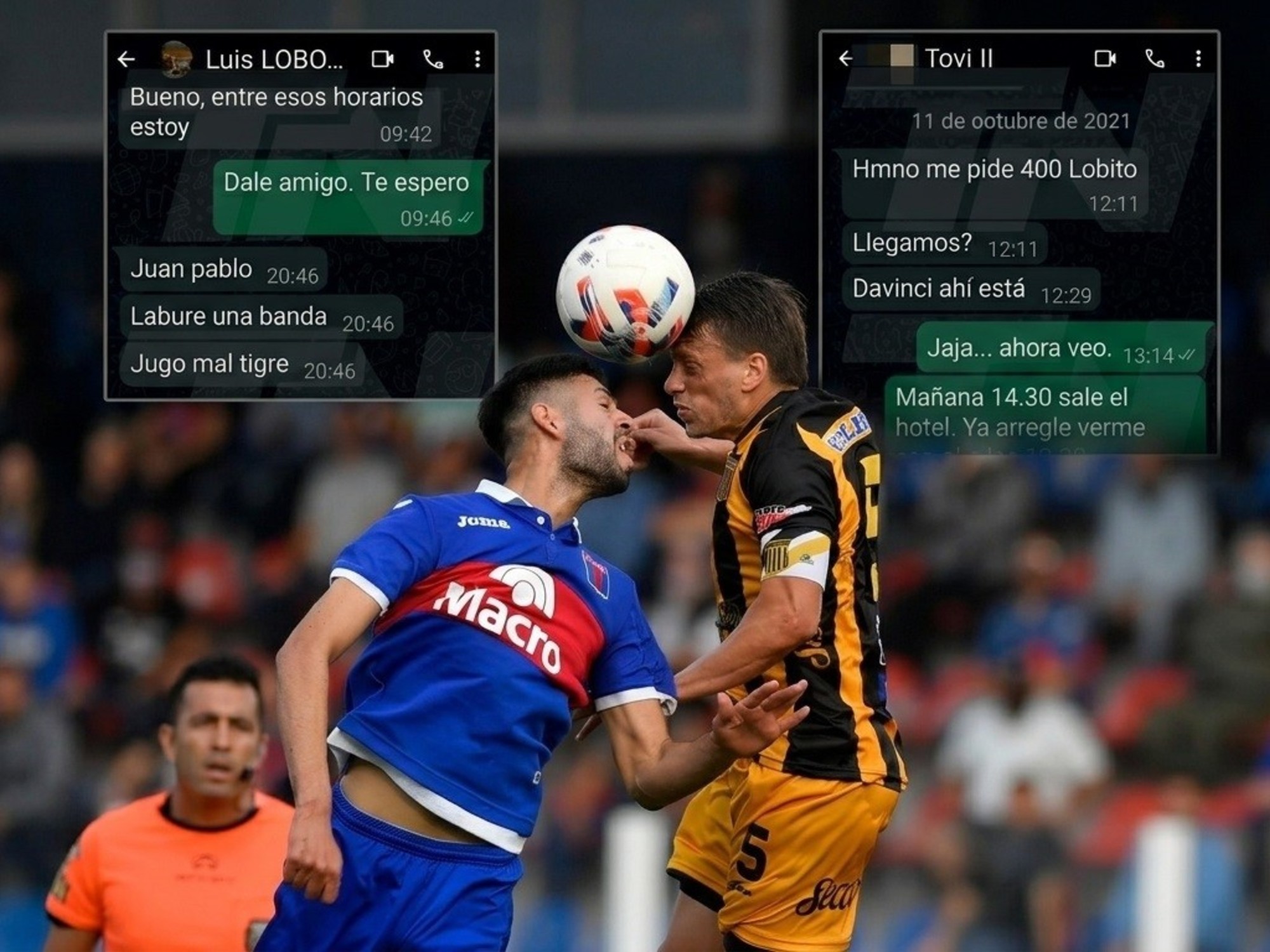 El intercambio de frases continúa por la noche, ya después del empate en Victoria. Lobo Medina le pasa tres mensajes: «Juan Pablo. Laburé una banda. Jugó mal Tigre». El árbitro parece contrariado por no haber podido hacer más para favorecer al Matador. Entonces, Beacon lo tranquiliza: «Dejaste todo, hermano. Tranquilo que esas cosas se ven». Y le envía un segundo mensaje: «Mi amigo está muy conforme».