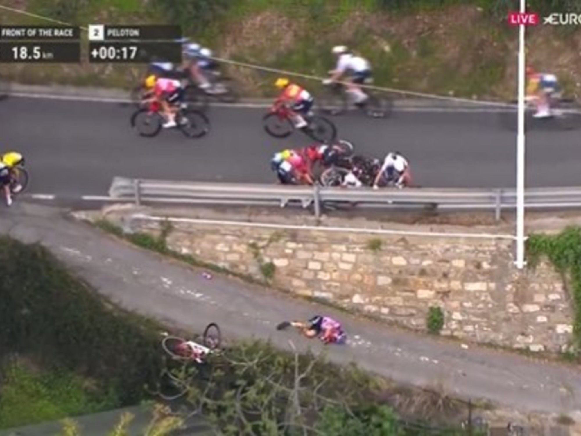 El choque múltiple (en el que también se vio involucrada Kasia Niewiadoma, ganadora del Tour de Francia en 2024) ocurrió en la bajada de la Cipressa que es, junto al Poggio, una de las dos subidas míticas de los últimos tramos del recorrido.