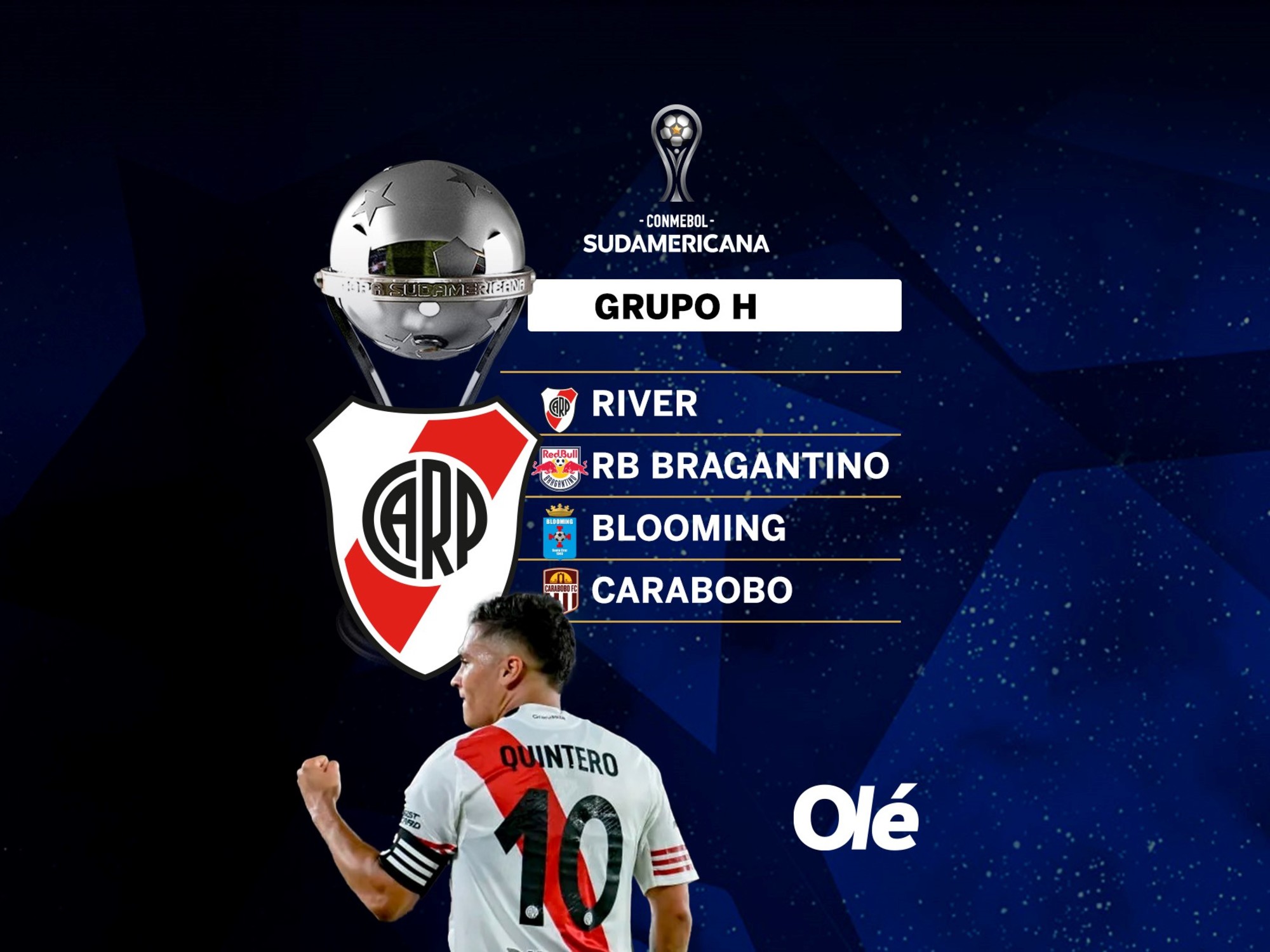 Por ahora, los otros cinco encuentros del Millonario en la fase de grupos no sufrieron cambios. El estreno como local será el miércoles 15 de abril a las 21:30, frente a Carabobo en el Monumental. Allí buscará hacerse fuerte y comenzar a construir su clasificación como líder (clave para evitar el playoff ante un tercero de Libertadores).