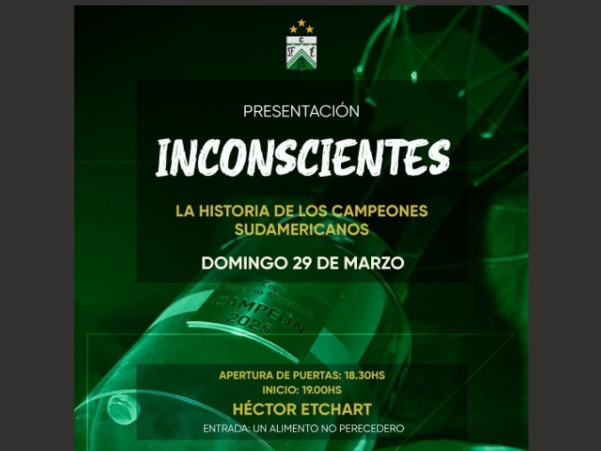 El Club Ferro Carril Oeste vivirá una jornada especial este domingo 29 de marzo en el Héctor Etchart, con la presentación oficial de «Inconscientes», el documental que repasa la histórica consagración del básquet verdolaga en la Liga Sudamericana 2025, obtenida en diciembre del año pasado.