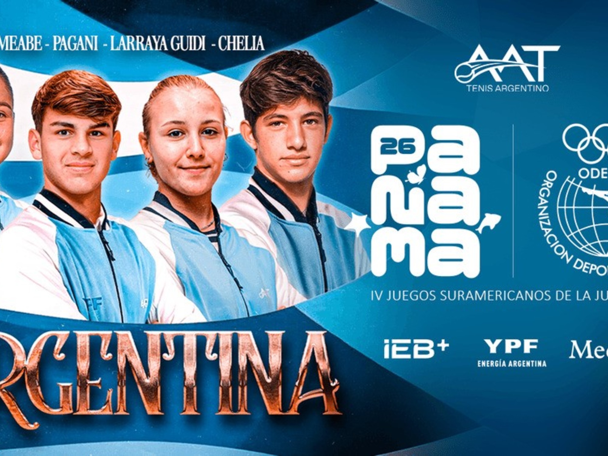 Argentina tiene representantes confirmados para los IV Juegos Suramericanos de la Juventud Panamá 2026: Dante Pagani , Benjamín Chelía , Sol Larraya Guidi y Sofía Meabe integrarán la delegación nacional en el certamen que se desarrollará del 12 al 25 de abril, con la competencia de tenis prevista entre el 20 y el 24 en el Centro de Tenis Fred Maduro.