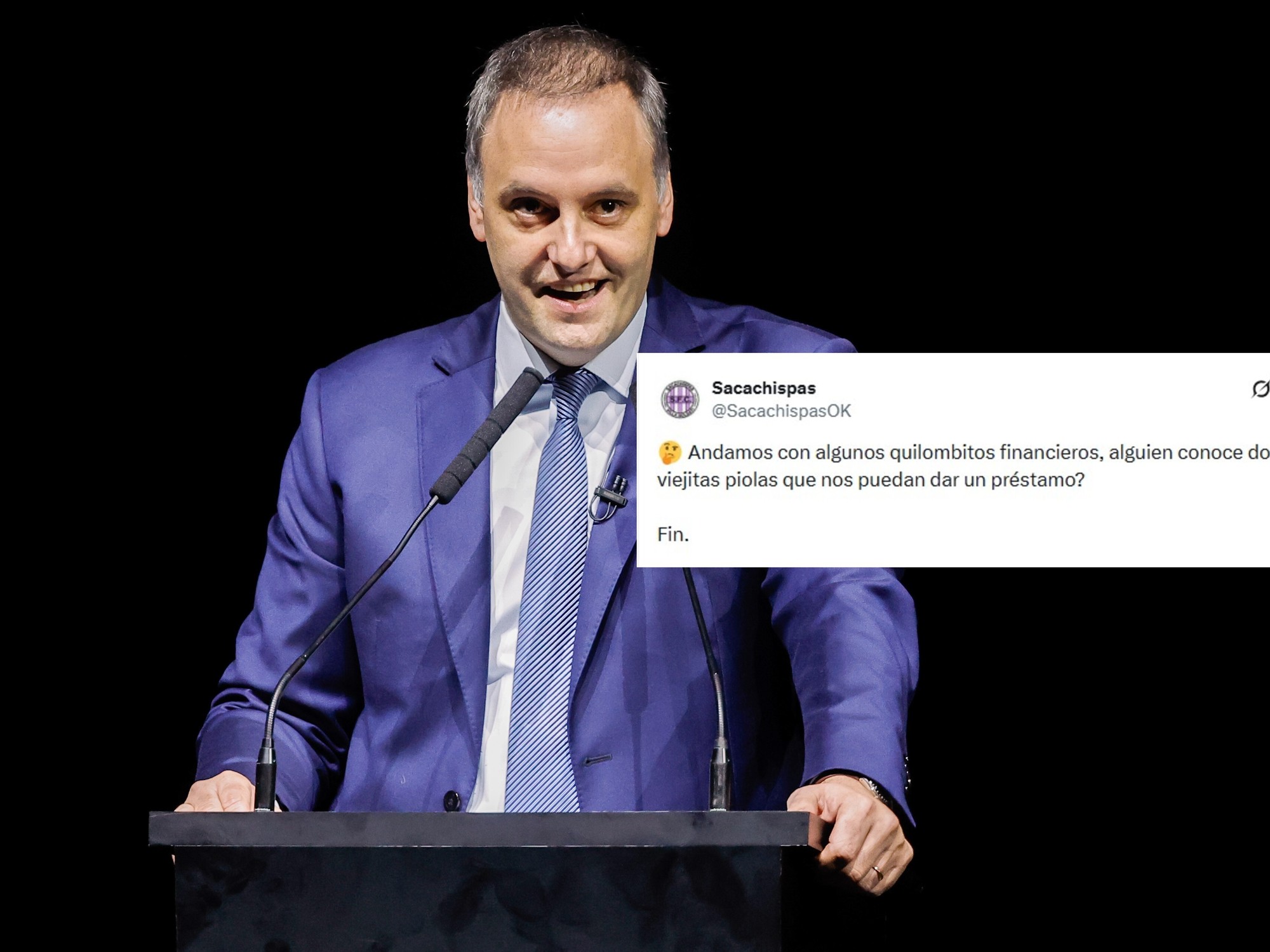 «Andamos con algunos quilombitos financieros, ¿alguien conoce dos viejitas piolas que nos puedan dar un préstamo?», disparó el actual líder de la Primera C. Y remató con un «fin», latiguillo que el propio Adorni utiliza en sus posteos personales.