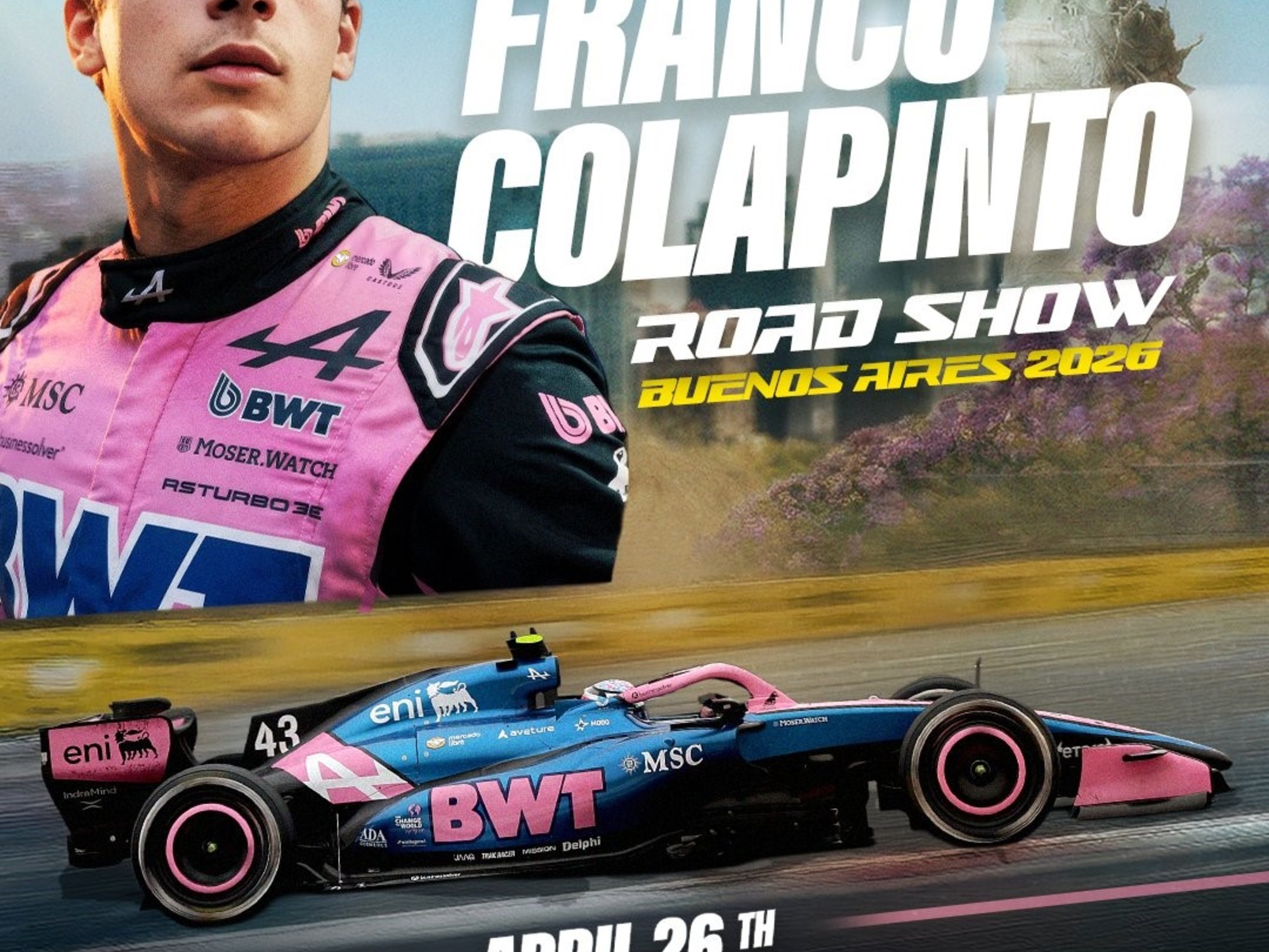 Franco conducirá el monoplaza de Fórmula 1 E20 de 2012, impulsado por un motor V8 Renault, con los colores oficiales del BWT Alpine Formula One Team, por las calles del barrio de Palermo el 26 de abril de 2026.