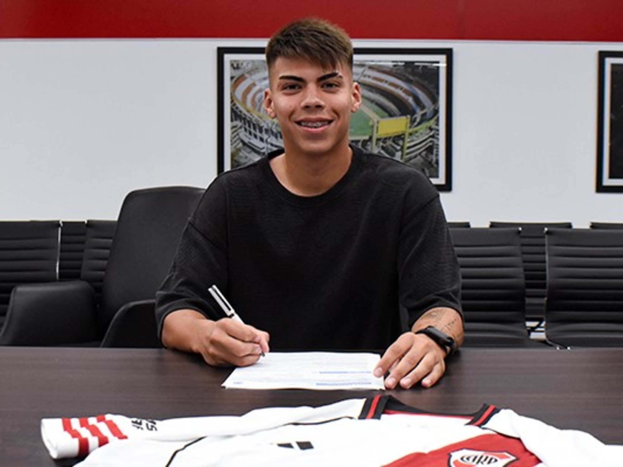 Primero como enganche y ahora como #5 tradicional con muy buen control de pelota, un primer pase seguro y manejo de los perfiles, el nacido en la ciudad bonaerense de Rojas ya tenía contrato profesional en Núñez hasta diciembre de 2027, pero debido a su proyección se llegó a un nuevo acuerdo para la extensión de su vínculo hasta diciembre de 2030, firma que se llevó a cabo este lunes 13 en las oficinas del Monumental.