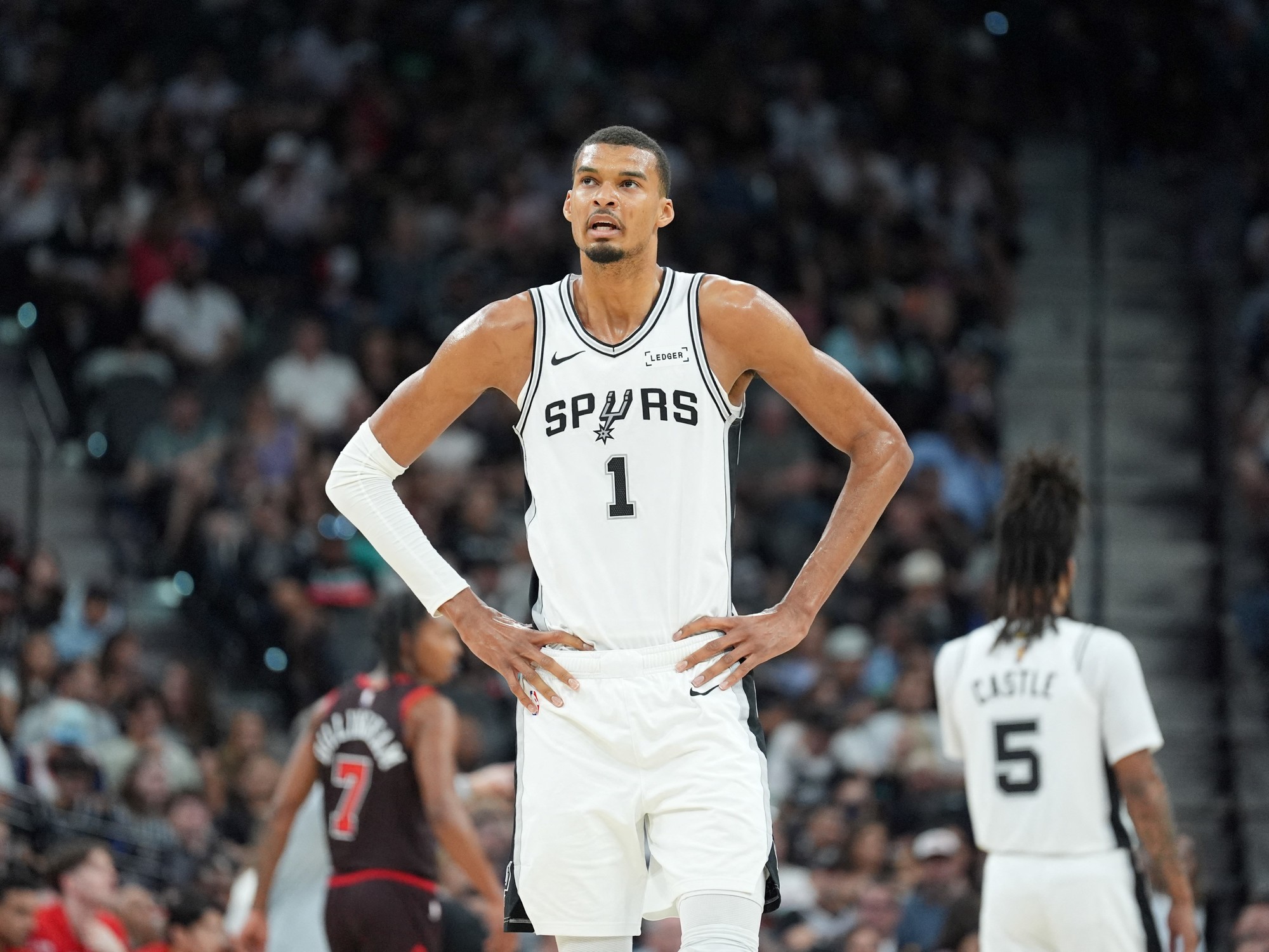 Durante la noche del lunes, en la victoria por 129 a 114 para los texanos frente a Chicago Bulls, Wembanyama logró el máximo puntaje de su temporada, con 41 puntos y 16 rebotes, pero se llevó todos los flashes tras conseguir el doble-doble más rápido en la historia de la NBA.